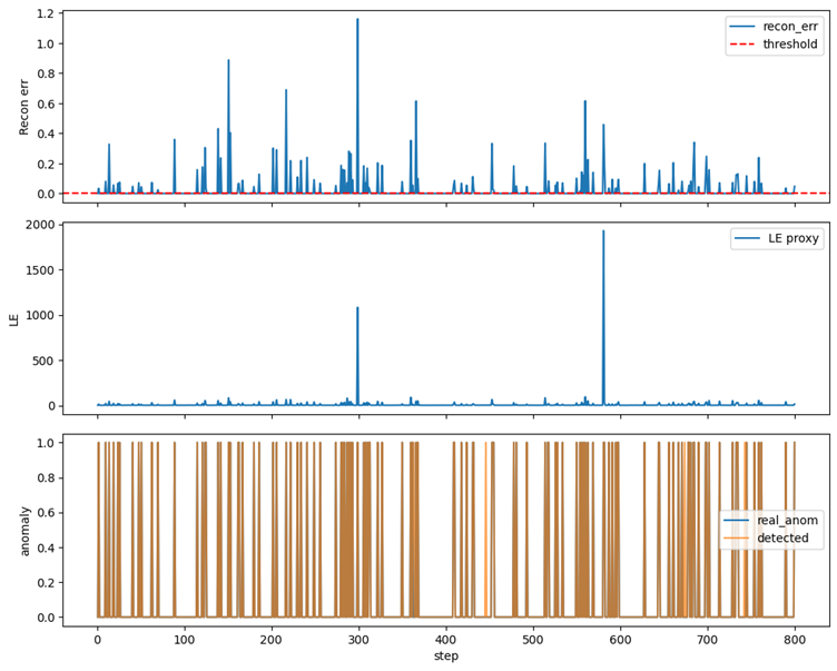 print(f"Anomaly detection metrics (AE+LE):\n Precision={precision:.3f} Recall={recall:.3f} F1={f1:.3f}")
