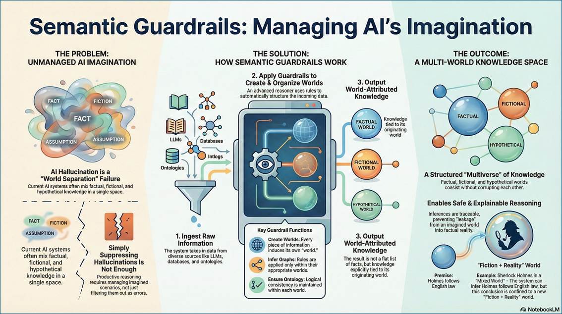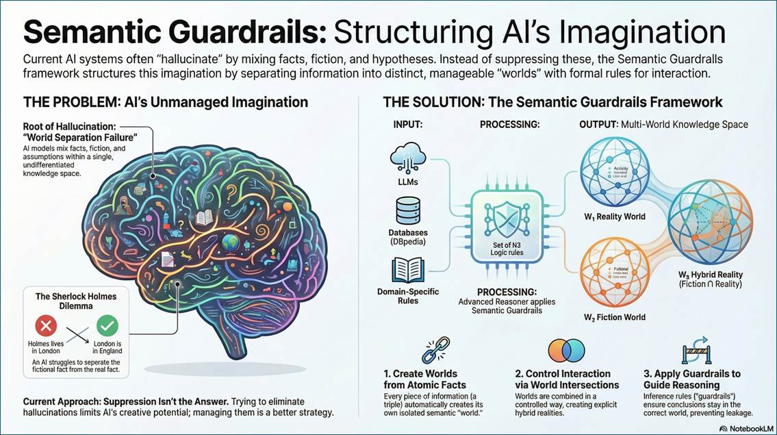 (54) How to organize AI hallucinations within semantic graphs as interconnected imaginable worlds